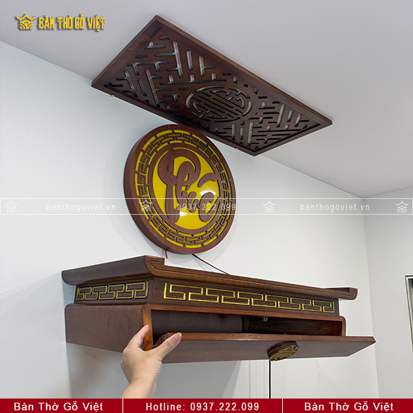 Đặt bàn thờ lên khung treo và cố định bằng vít, đảm bảo cân bằng.