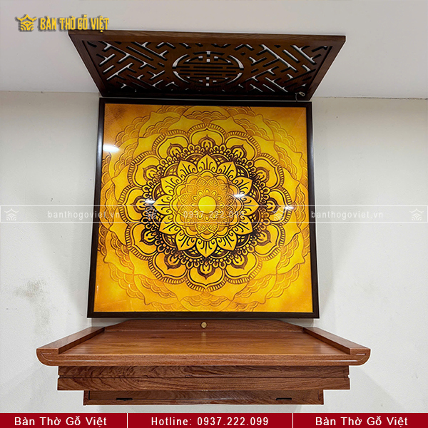 Đặt bàn thờ lên khung treo và cố định bằng vít, đảm bảo cân bằng.