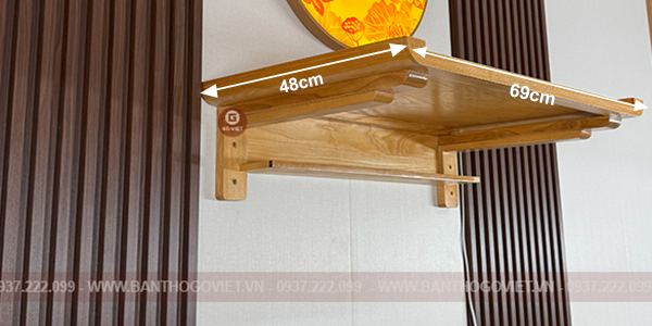 Kích thước Bàn Thờ Treo Tường Gỗ Sồi Chân Bắp Màu Vàng Sáng GV-TR020