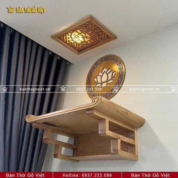 Các kích thước bàn thờ treo thường dựa theo thước Lỗ Ban phong thủy, vừa đảm bảo hài hòa không gian, vừa mang ý nghĩa tài lộc.