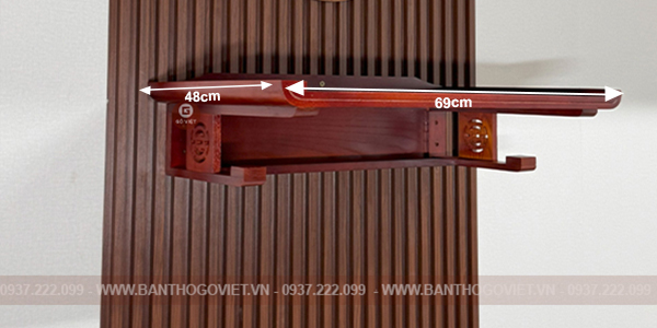Kích thước Bàn Thờ Treo Tường Gỗ Sồi Chân Thọ Màu Cánh Gián GV-TR023