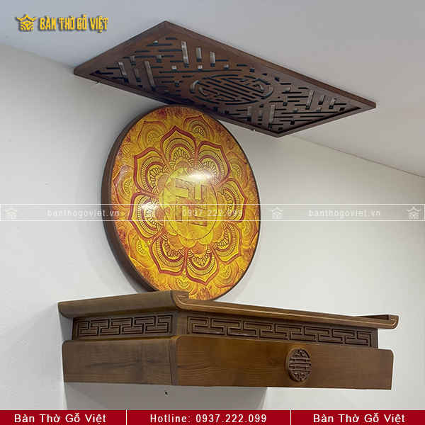 Đặt bàn thờ lên khung treo và cố định bằng vít, đảm bảo cân bằng.