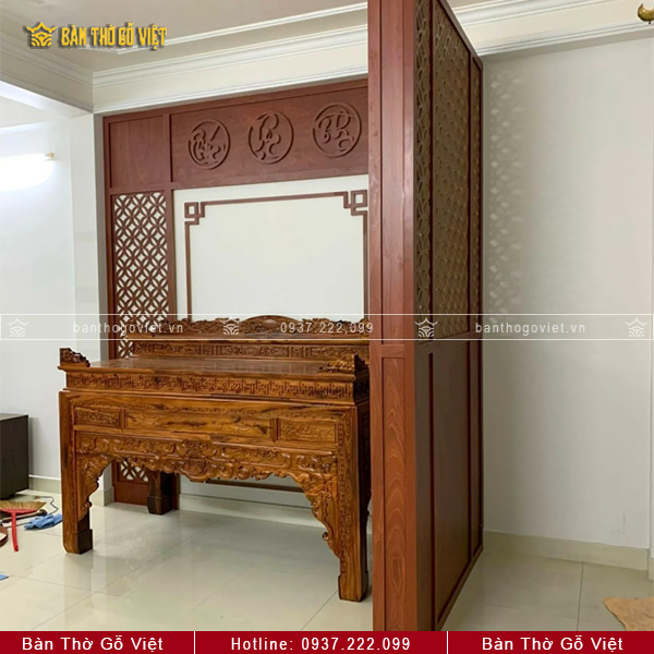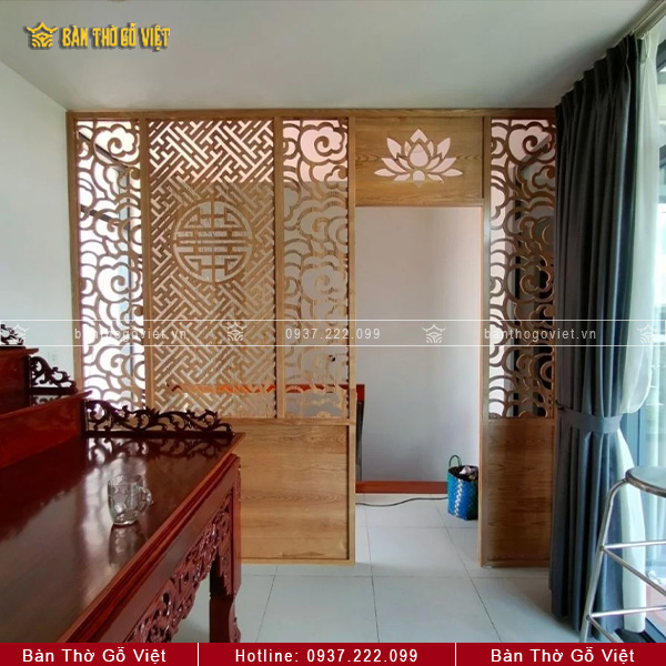 Tại Bàn Thờ Gỗ Việt, mỗi mẫu vách ngăn bàn thờ đều được chế tác tỉ mỉ với những họa tiết tinh xảo và độc đáo. Từ các mẫu vách ngăn phòng thờ hoa Sen, vách ngăn chữ Vạn, vách ngăn Phúc – Lộc – Thọ, cho đến những thiết kế vách ngăn CNC hiện đại, tất cả đều mang lại vẻ đẹp sang trọng cho không gian thờ cúng. Dưới đây là một số mẫu vách ngăn CNC nổi bật, giá cả hợp lý, được ưa chuộng trên thị trường hiện nay: