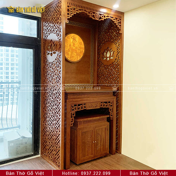 Tại Bàn Thờ Gỗ Việt, mỗi mẫu vách ngăn bàn thờ đều được chế tác tỉ mỉ với những họa tiết tinh xảo và độc đáo. Từ các mẫu vách ngăn phòng thờ hoa Sen, vách ngăn chữ Vạn, vách ngăn Phúc – Lộc – Thọ, cho đến những thiết kế vách ngăn CNC hiện đại, tất cả đều mang lại vẻ đẹp sang trọng cho không gian thờ cúng. Dưới đây là một số mẫu vách ngăn CNC nổi bật, giá cả hợp lý, được ưa chuộng trên thị trường hiện nay: