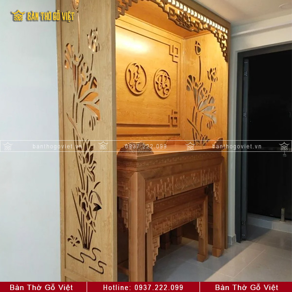 Tại Bàn Thờ Gỗ Việt, mỗi mẫu vách ngăn bàn thờ đều được chế tác tỉ mỉ với những họa tiết tinh xảo và độc đáo. Từ các mẫu vách ngăn phòng thờ hoa Sen, vách ngăn chữ Vạn, vách ngăn Phúc – Lộc – Thọ, cho đến những thiết kế vách ngăn CNC hiện đại, tất cả đều mang lại vẻ đẹp sang trọng cho không gian thờ cúng. Dưới đây là một số mẫu vách ngăn CNC nổi bật, giá cả hợp lý, được ưa chuộng trên thị trường hiện nay: