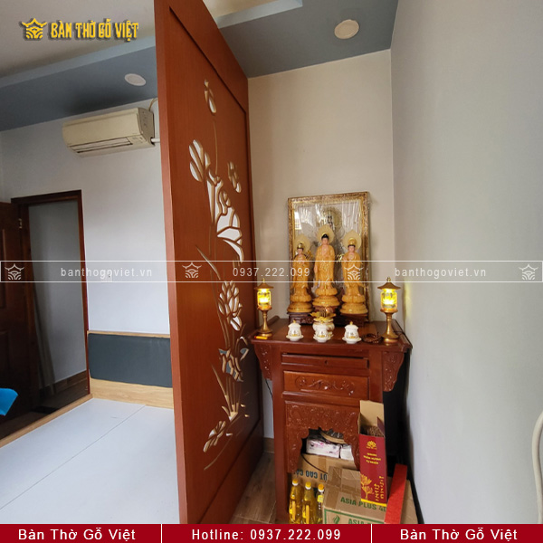 Tại Bàn Thờ Gỗ Việt, mỗi mẫu vách ngăn bàn thờ đều được chế tác tỉ mỉ với những họa tiết tinh xảo và độc đáo. Từ các mẫu vách ngăn phòng thờ hoa Sen, vách ngăn chữ Vạn, vách ngăn Phúc – Lộc – Thọ, cho đến những thiết kế vách ngăn CNC hiện đại, tất cả đều mang lại vẻ đẹp sang trọng cho không gian thờ cúng. Dưới đây là một số mẫu vách ngăn CNC nổi bật, giá cả hợp lý, được ưa chuộng trên thị trường hiện nay: