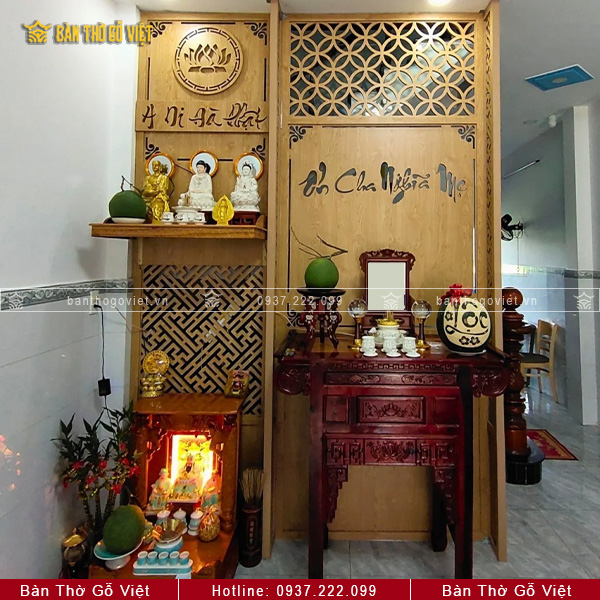 Tại Bàn Thờ Gỗ Việt, mỗi mẫu vách ngăn bàn thờ đều được chế tác tỉ mỉ với những họa tiết tinh xảo và độc đáo. Từ các mẫu vách ngăn phòng thờ hoa Sen, vách ngăn chữ Vạn, vách ngăn Phúc – Lộc – Thọ, cho đến những thiết kế vách ngăn CNC hiện đại, tất cả đều mang lại vẻ đẹp sang trọng cho không gian thờ cúng. Dưới đây là một số mẫu vách ngăn CNC nổi bật, giá cả hợp lý, được ưa chuộng trên thị trường hiện nay: